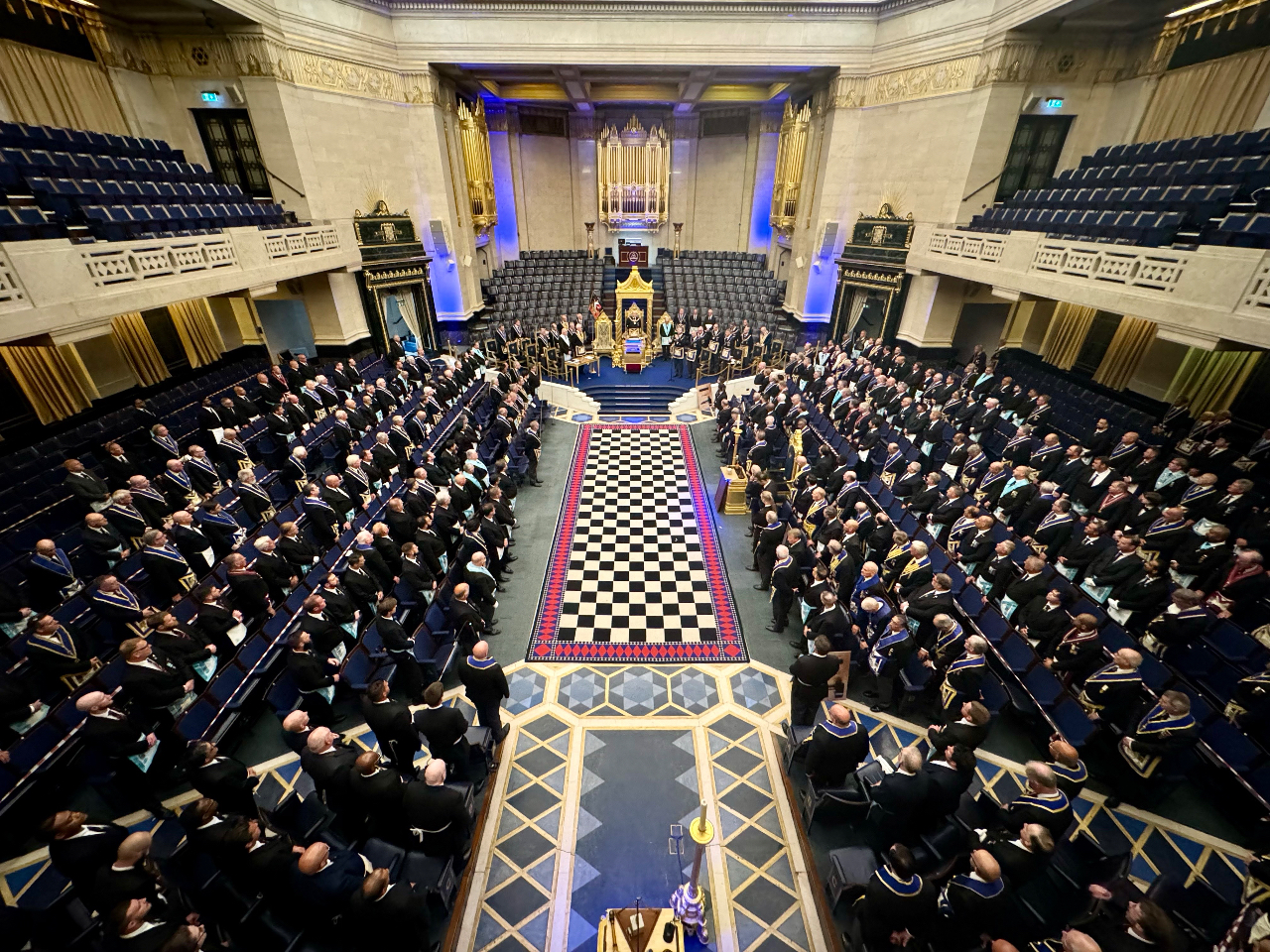 All 3 ceremonies carried out at Freemasons Hall, London using every temple by 47 Lodges.