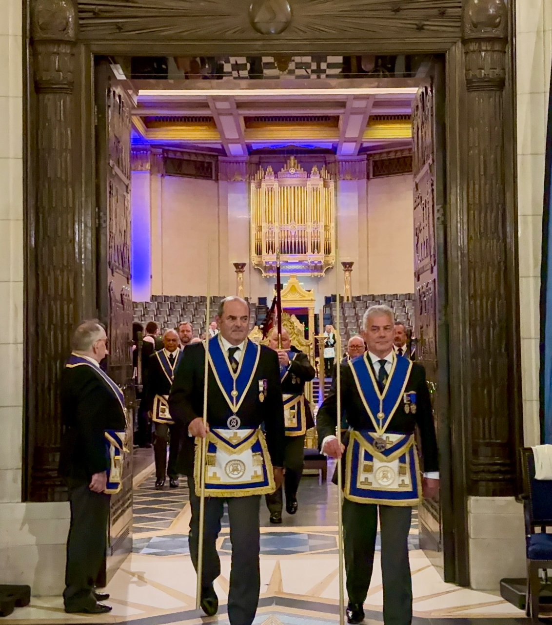 For Tim Anders initiating his 85-year-old father into Freemasonry in the Grand Temple was something he will never forget. 650 Freemasons were there to witness Tims brother Chris function as Junior Deacon, guiding their father through the ceremony. All other offices were filled by our Light Blues demonstration team - all of which had been in Masonry less that 4 years.