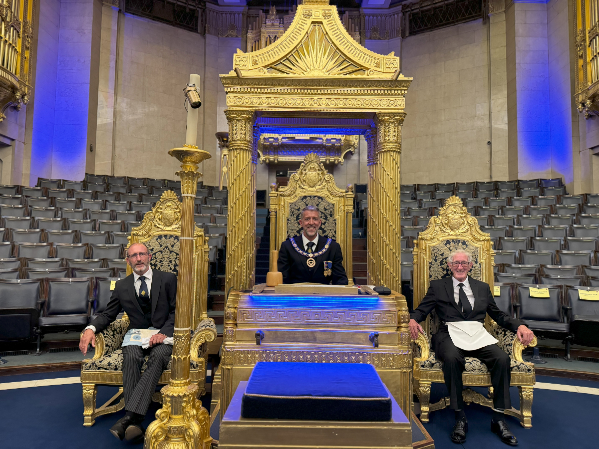 "Words fail me in describing my raising at BIG 1-2-3. It was an incredible experience. Just as I exited the Covent Garden station, I saw loads of the brethren. There were men dressed in black, all masons, and all headed to the Big 1-2-3.  The raising ceremony that made me a Master Mason was humbling, and steeped in the old traditions of operative masons. It took place in the main temple, with its high ceilings, beautiful architecture, and golden thrones across the altar. The scale, the music, and the lights completely blew me away! I have no idea how they managed to choreograph this, but I am truly thankful and humbled to be in the company of so many other masons on such a memorable day; I am proud to call you my brothers."