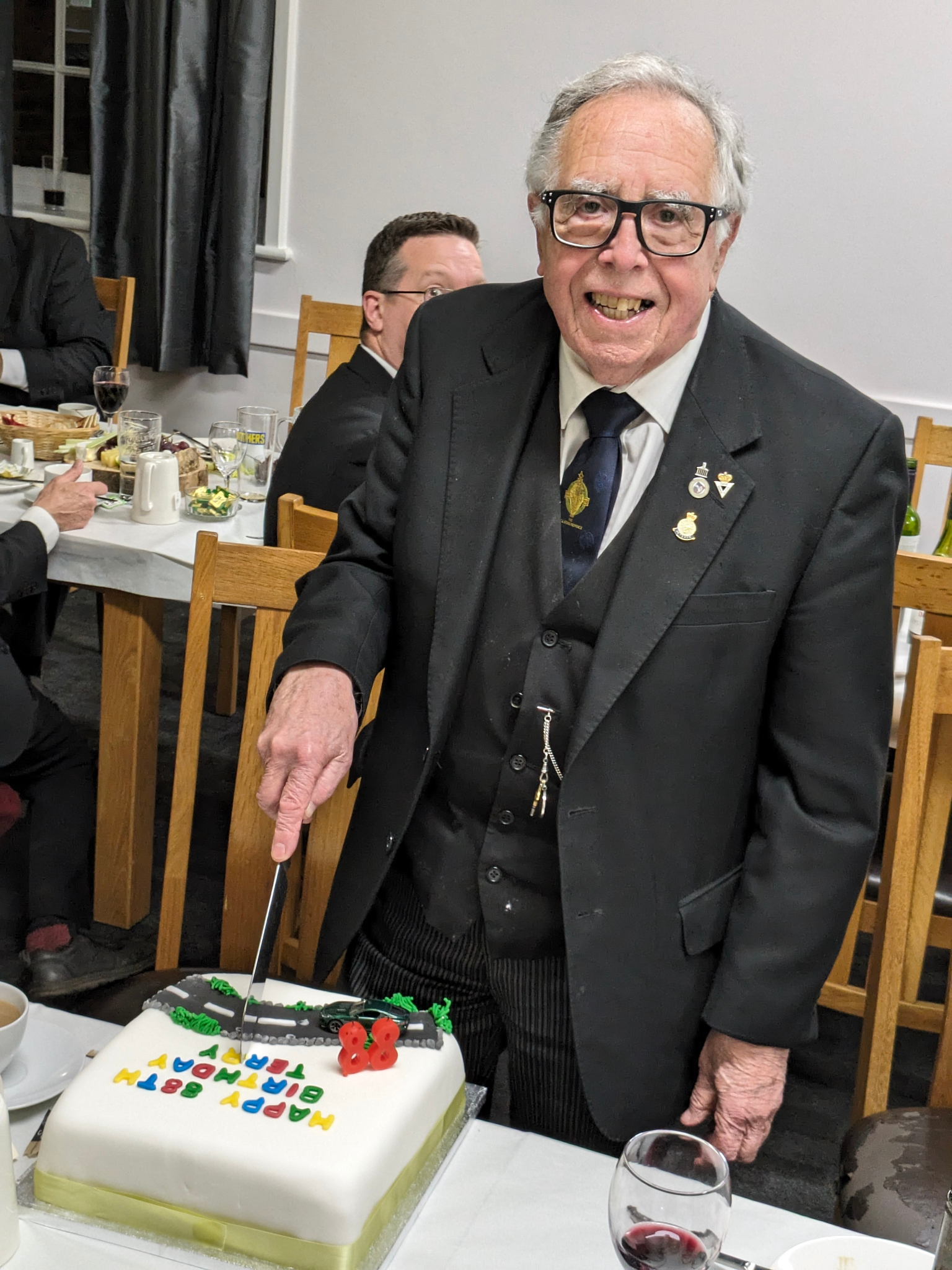 Finally, at the dinner, after the meeting, the lodge congratulated their honorary member, Tyler Bro. Terry, on his recent birthday, 88 years young!