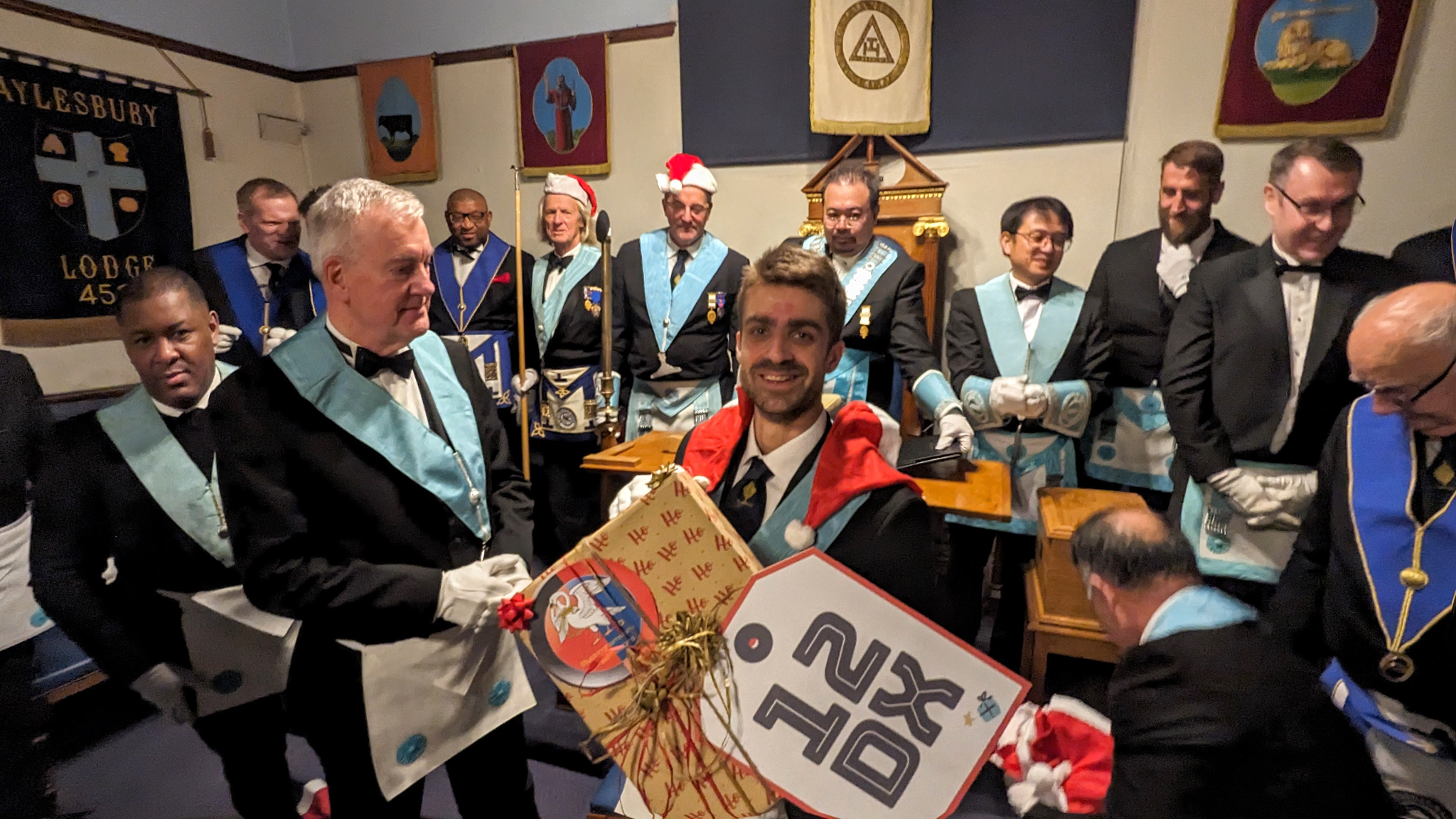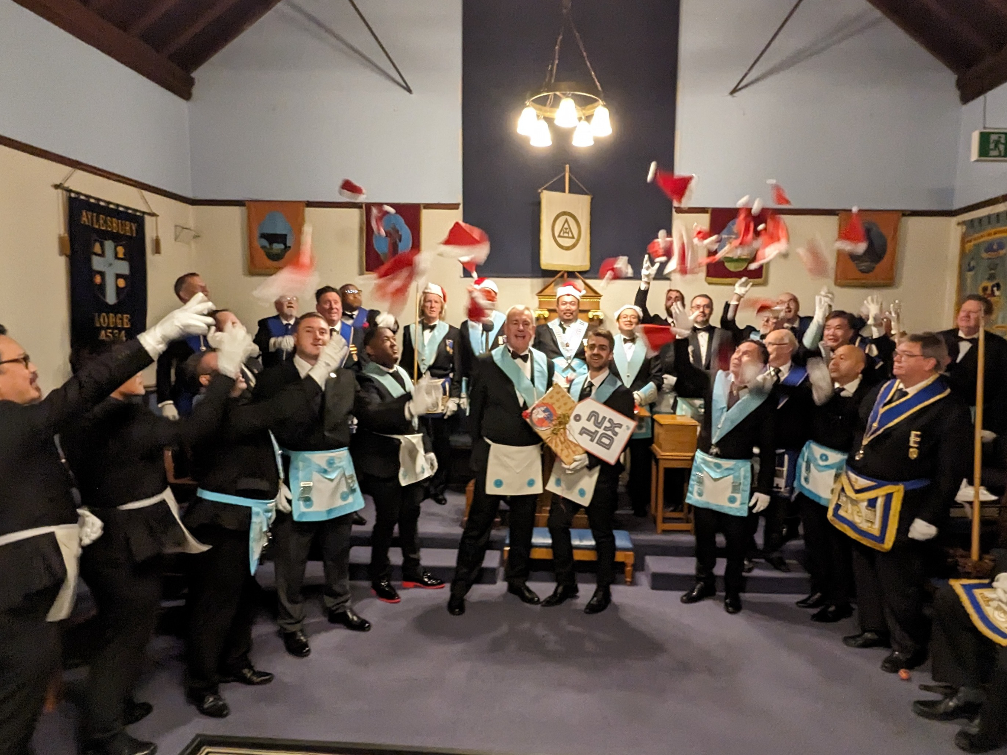 Bro. Amro joined Claydon Lodge in Winslow and enjoyed a rendition of the Entered Apprentices song by a choir of Freemasons in Santa hats!