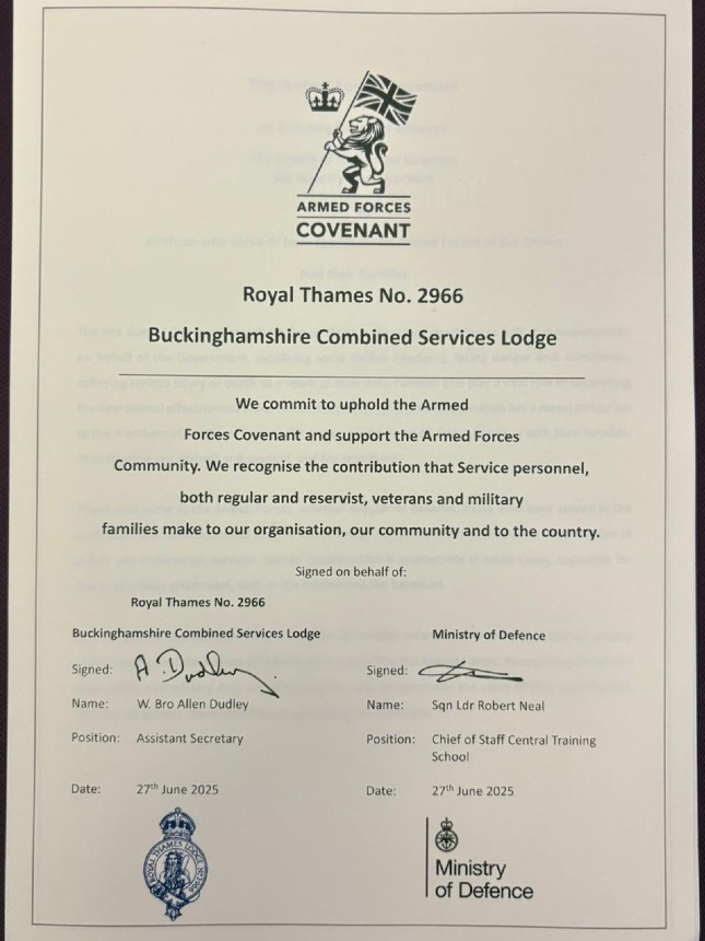 This reinforces Buckinghamshire’s unwavering commitment to the Armed Forces Community, ensuring that our serving, reserve, and veteran communities are not disadvantaged in any way. Our RW PGM is keen that Buckinghamshire continue to strive and maintain the AFC Principles, which align with our already established ethos in providing Freemasonry, recognising their service and commitment.
