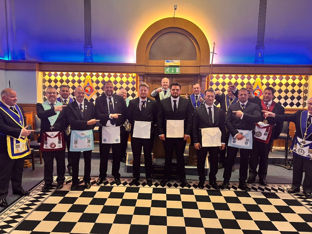 Initiations started at 9am and carried on throughout the day, and like something out of an ’80s game show, (think Challenge Anneka), the Provincial Grand Master and his team of provincial officers were on a high-energy mission, travelling across the county to witness as many initiation ceremonies as possible. Their commitment and enthusiasm meant they could be seen appearing in photos from numerous centres, showing support, celebrating with new initiates, and strengthening the connection across the province.