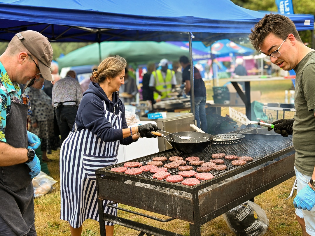 Guests enjoyed burgers, sausages, a variety of salads, drinks from the bar (including Rebellion on tap), and family activities such as bouncy castles, football, and a coconut shy. Entertainment featured performances by Jazz Singers and Friends, a DJ, and singers from Amir and Holly Dollies. Despite the occasional bout of rain, everyone had a lovely time. The day also included a raffle, with prizes kindly donated by guests.
