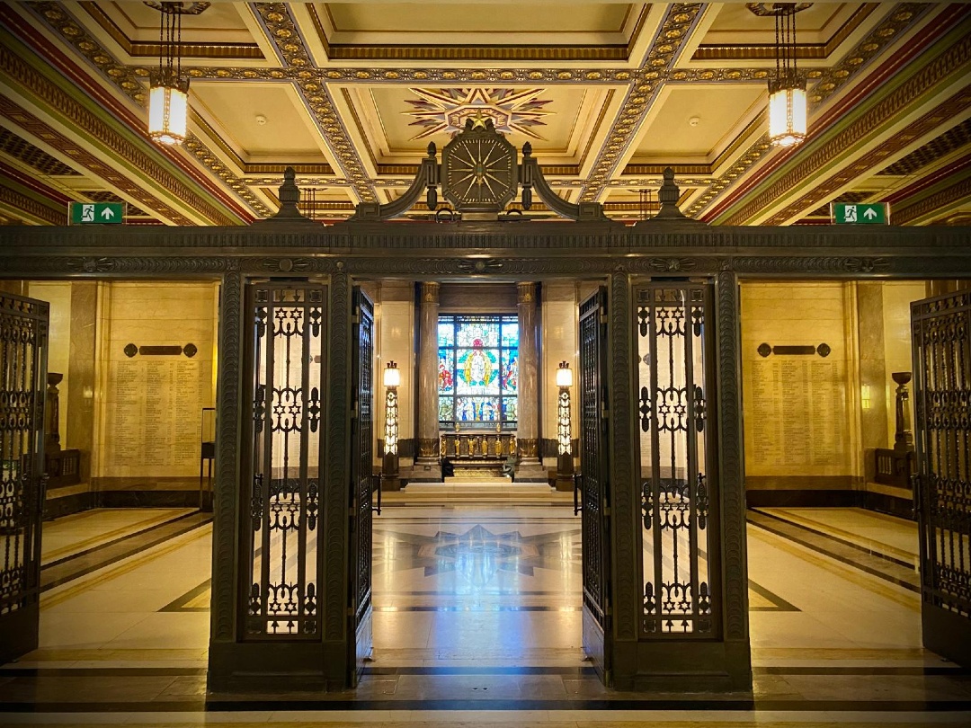 In the Processional Corridor of Freemasons’ Hall, are several beautiful stained glass windows capturing the virtues in stunning symbolic form all Created by the renowned artist George Kruger Gray.