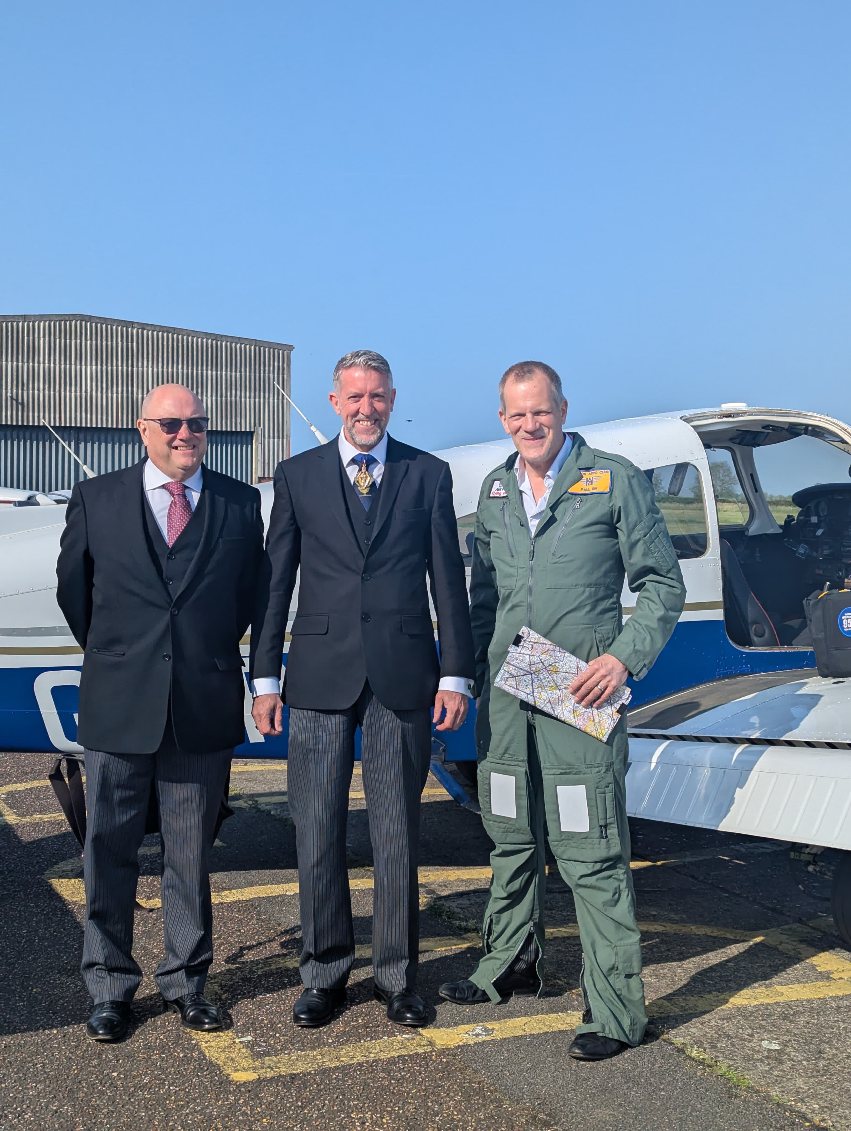 This morning, Adrian Marsh, the Grand Secretary of United Grand Lodge of England, alongside Tim Anders the Provincial Grand Master of Buckinghamshire  took to the sky in a Piper PA-28 Cherokee piloted by our very own Paul Brissenden-Hemstock.