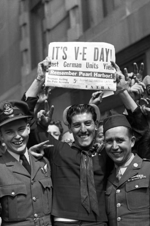 Victory in Europe Day, generally known as VE Day or V-E Day, was celebrated on Tuesday, 8 May 1945 to mark the formal acceptance by the Allies of World War II of Nazi Germany's unconditional surrender of its armed forces.