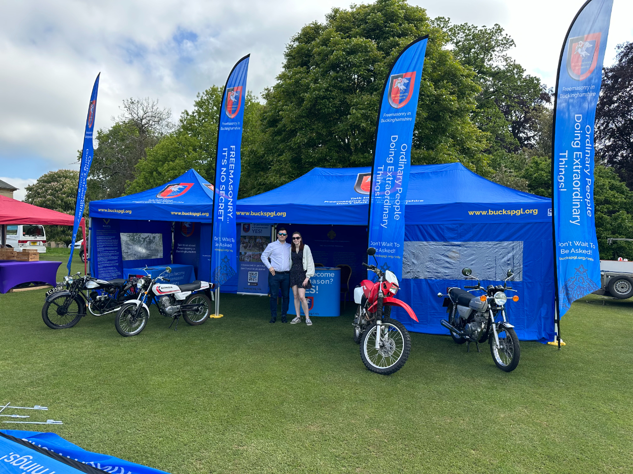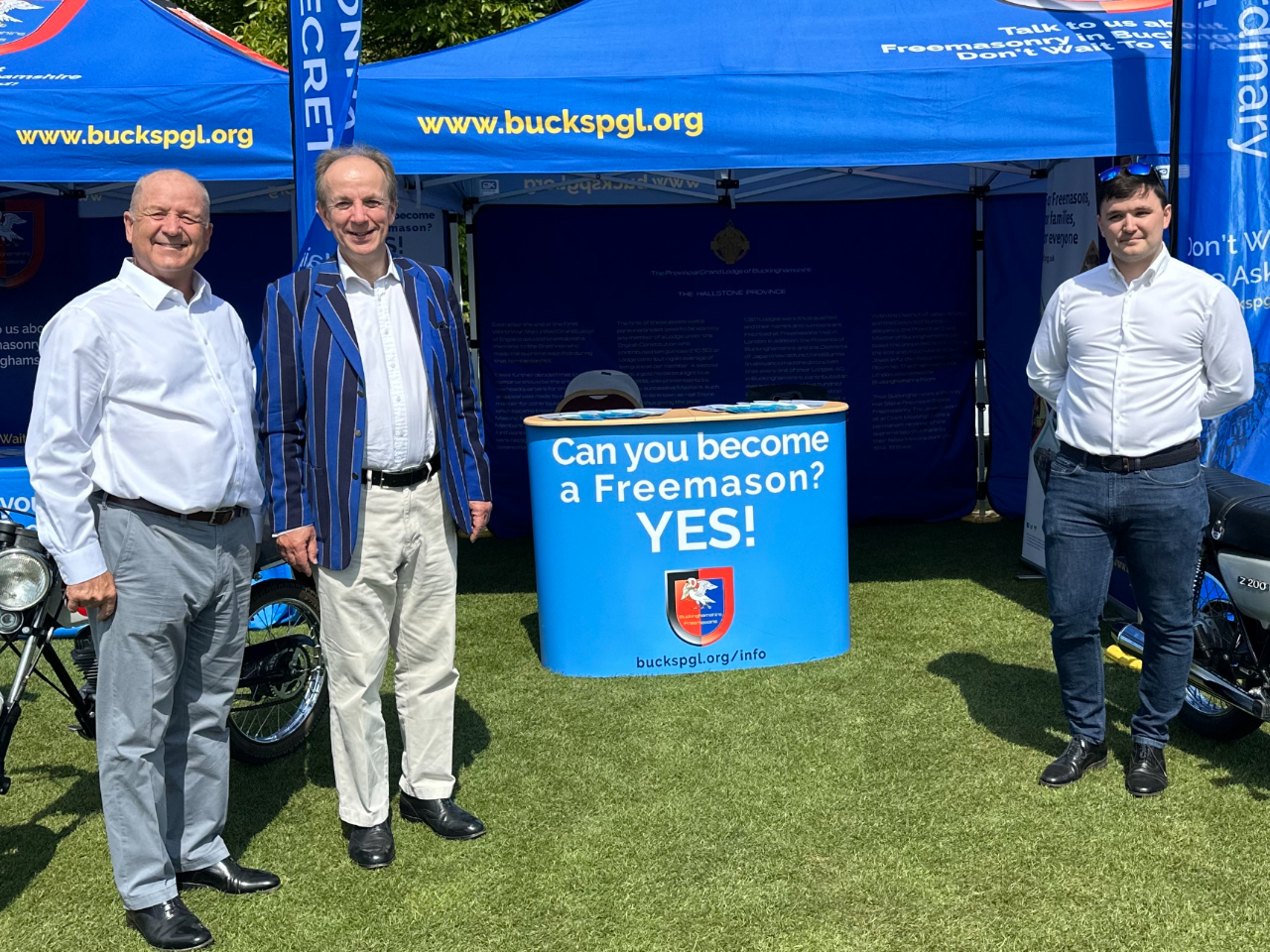 Members of the Buckinghamshire Motorcycle Lodge and the Buckinghamshire Classic Car Lodge attended the Bucks PSLC Festival on 3rd June at Stowe School. They were there to represent Buckinghamshire Freemasons, and to attract new members, by showcasing some of the fantastic things our special interest lodges have been doing; we displayed both vintage motorbikes and cars at this fantastic venue.