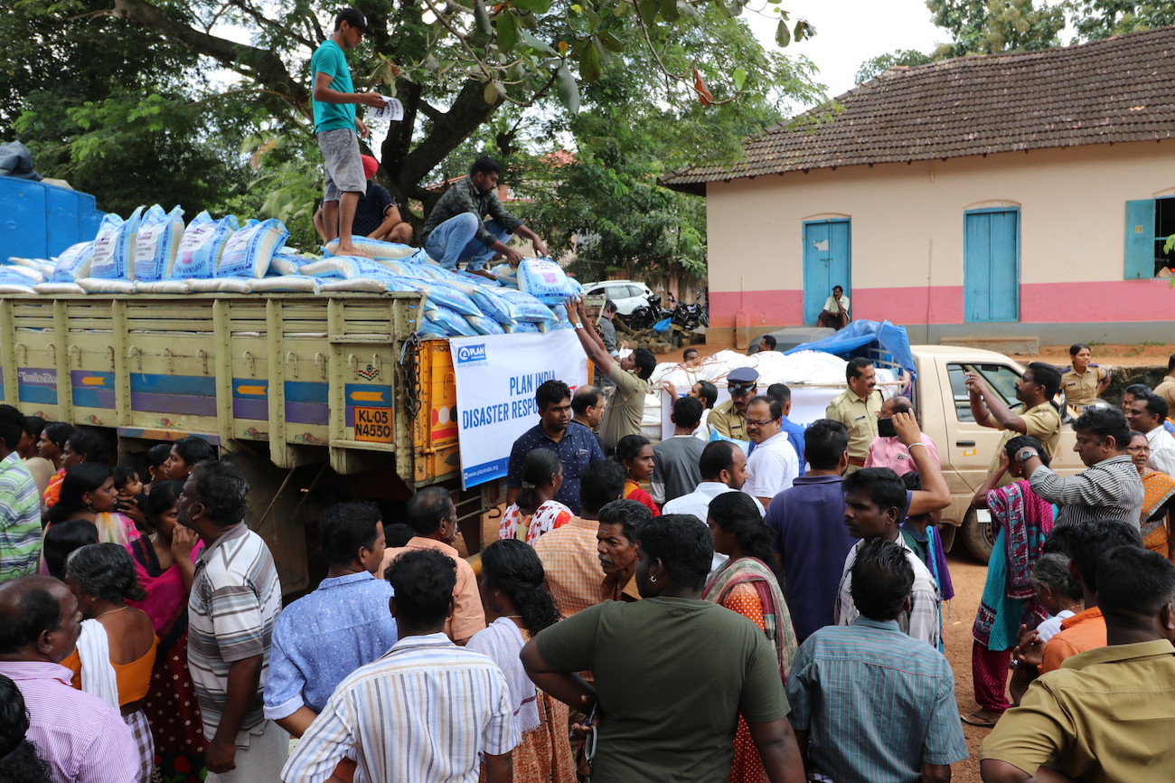 Attached are two photographs of local people in Kerala receiving aid from Plan International UK.
