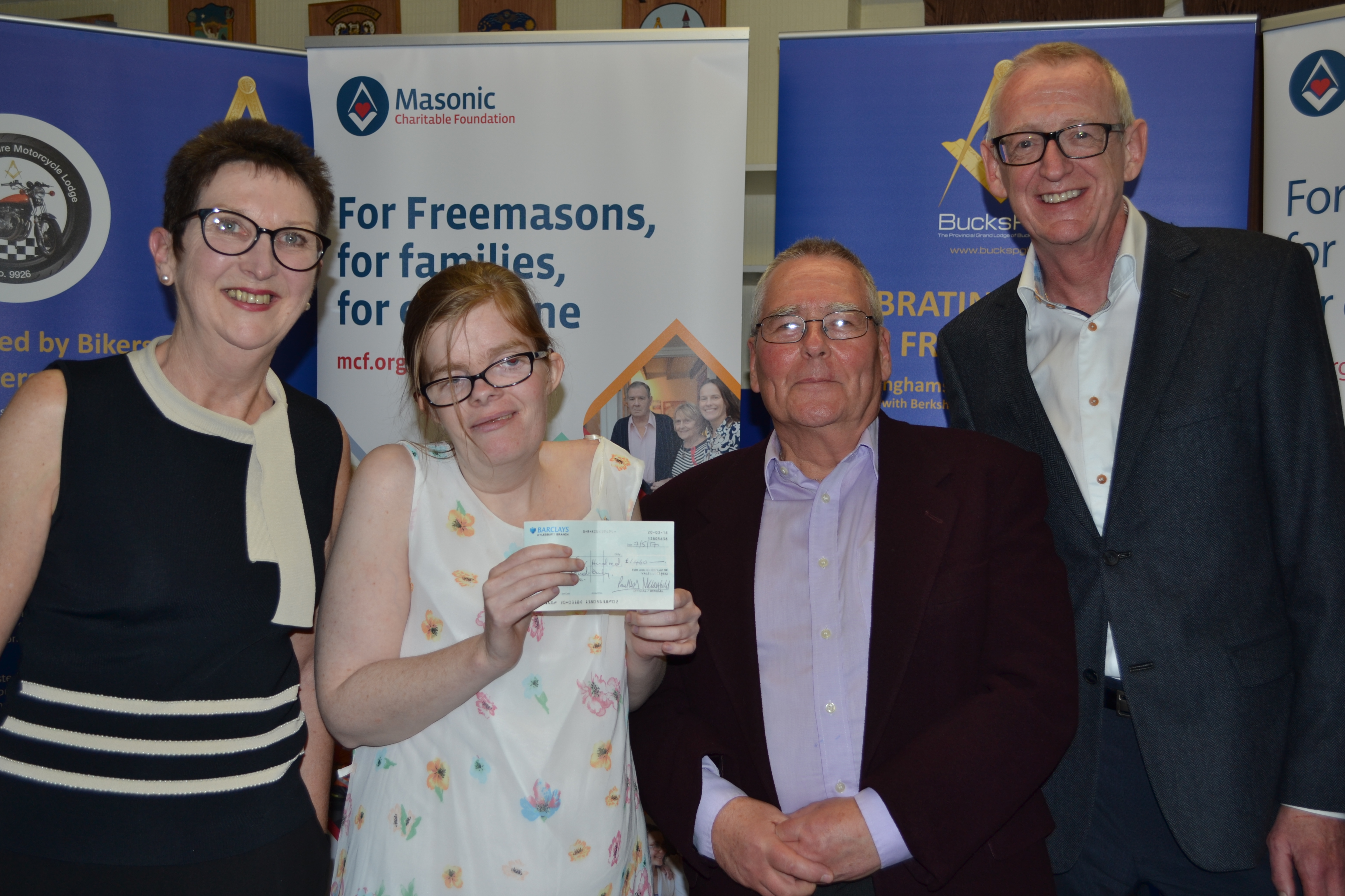 Article photo shows: Left to Right: Joyce Thomas, Gemma Draper who attends the Gateway Club, Paul Maddock of the Gateway Club and Peter Thomas (Master of Vale Lodge, No. 6632).