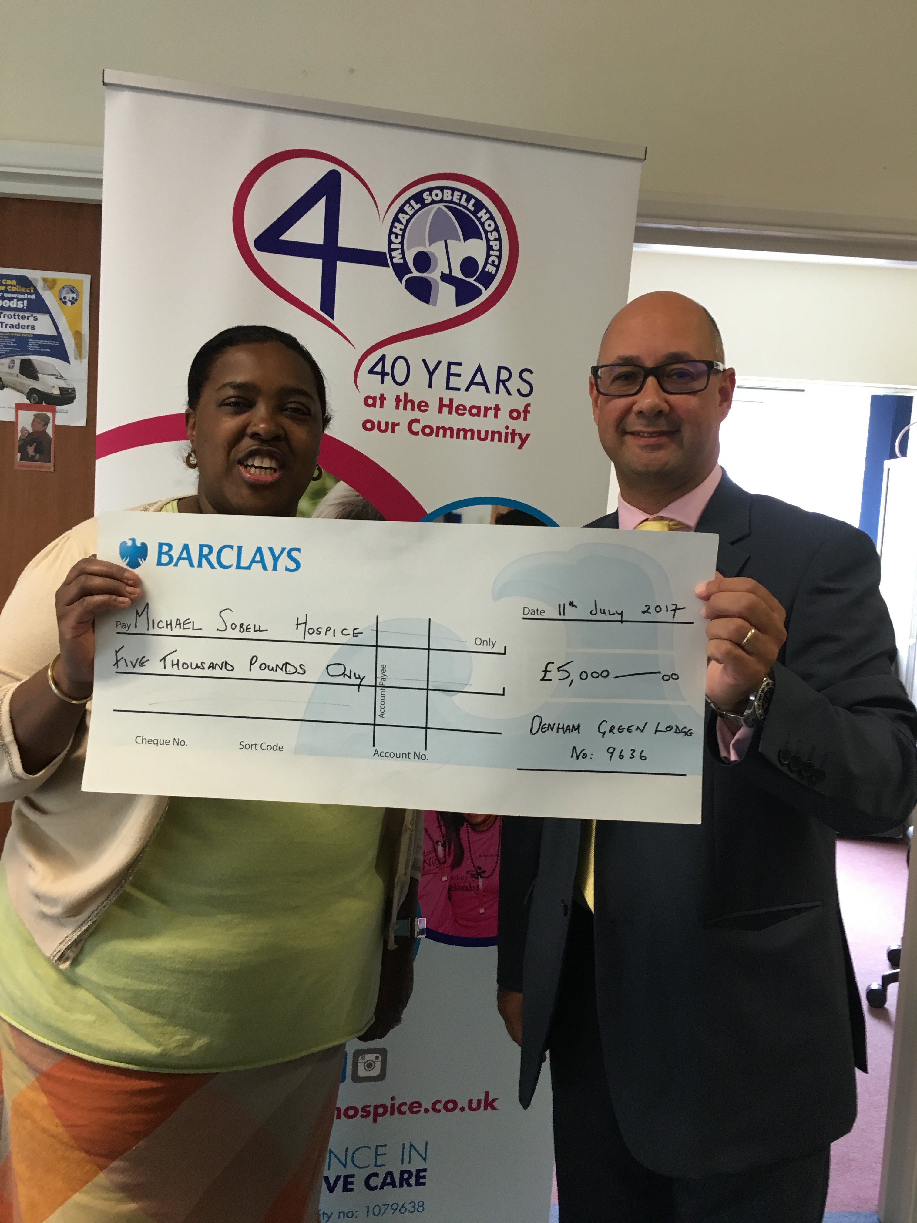 W.Bro David Durn, Secretary of Denham Green Lodge No: 9636 visited Michael Sobell House Hospice in Northwood, Middlesex on 11th July 2017 to present their Events and Community.