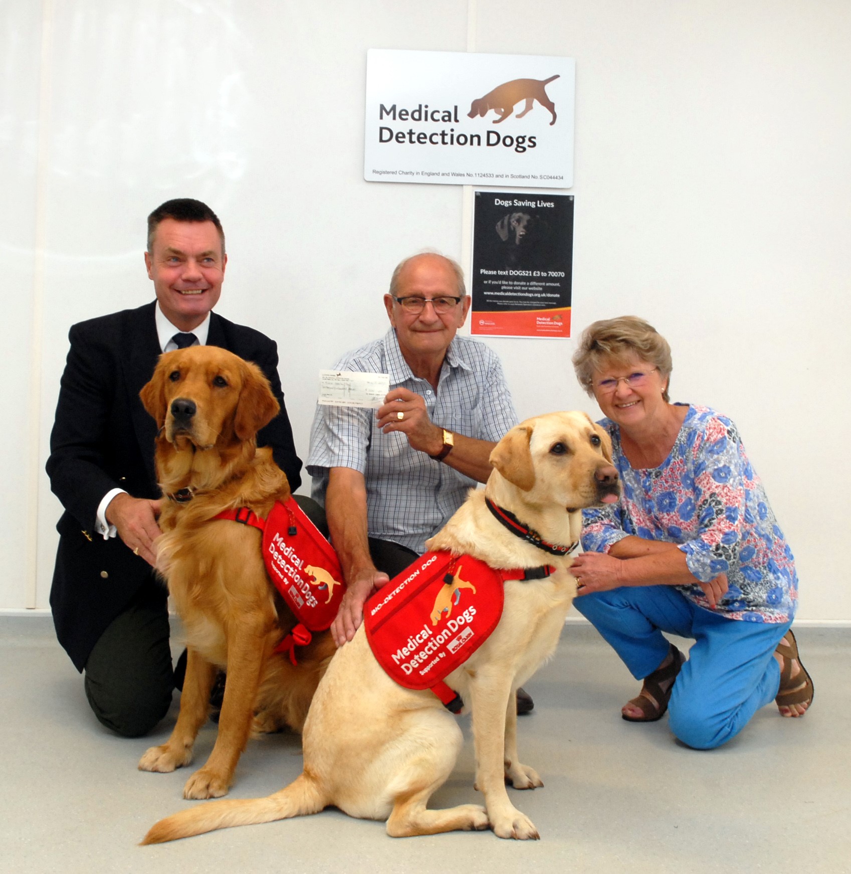 John Hubble, of Aylesbury, along with his wife, Doreen, was recently very pleased to present a cheque for £2,500 to Daniel Howard OBE, Chief Operating Officer of Medical Detection Dogs (MDD).