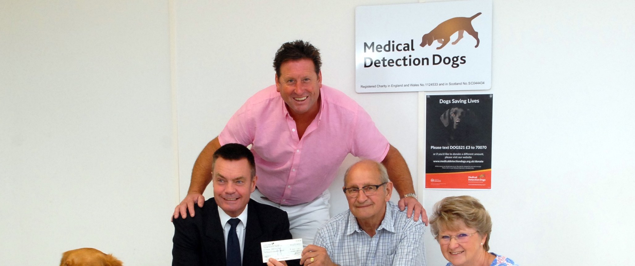 John Hubble, of Aylesbury, along with his wife, Doreen, was recently very pleased to present a cheque for £2,500 to Daniel Howard OBE, Chief Operating Officer of Medical Detection Dogs (MDD).
