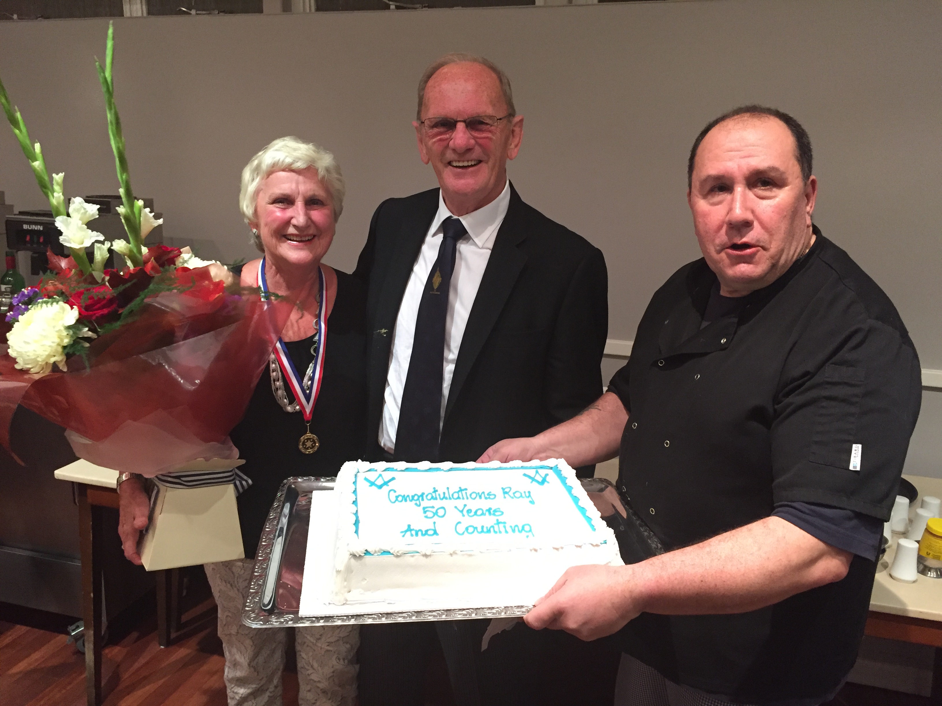 A bouquet of flowers and a 50th cake were then presented to Ray & his wife, Doreen, by Chef Eddie Irwin bringing the festive board to an end.